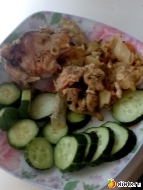 Обед: если честно есть совсем не хотелось,сильно болела голова и я сделала Салат из капусты моркови огурца и зелени с лимонным соком