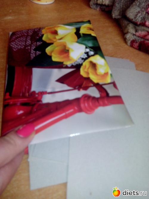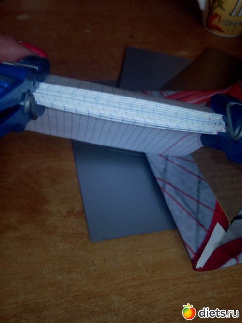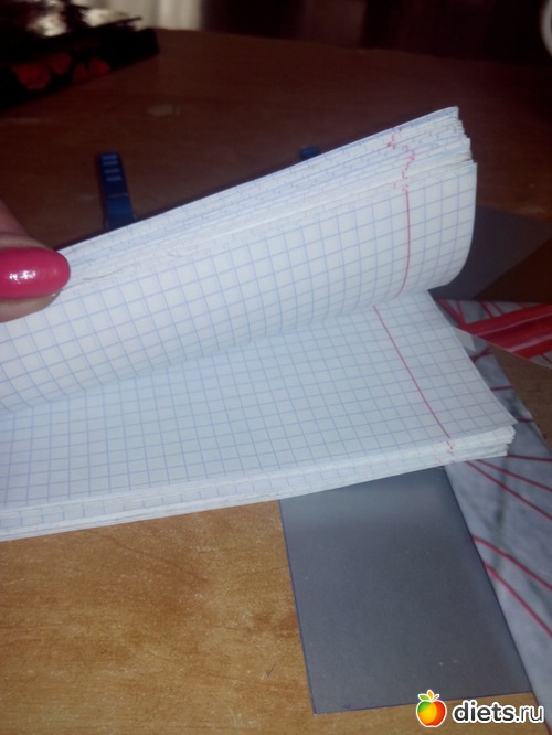 Обложку вырезала из обычной коробки и обернулась старым пакетом...