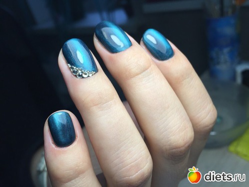 5 слоев: основа, база, черный гель-лак, бирюзовый, и закрепляющий слой. В тонкости не углублялась, мне интереснее кораблики чинить