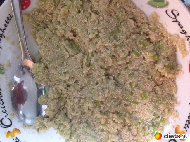 Совершенно спонтанно сочинился такой рецептик: потерла крупно сочное зеленое яблочко на мелкой терке и засыпала двумя ложками отрубей. Отруби впитали яблочный сок и получилось очень даже вкусненькое месиво. Выглядит может и не презантабельно, но вкусно очень, поверьте