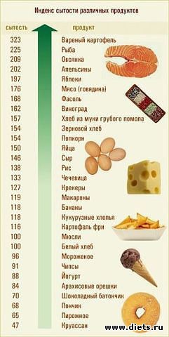 Вот я нашла таблицу индекса сытости продуктов :