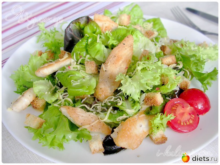Листья салата порвать на небольшие кусочки, выложить на тарелочки.