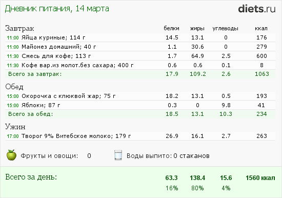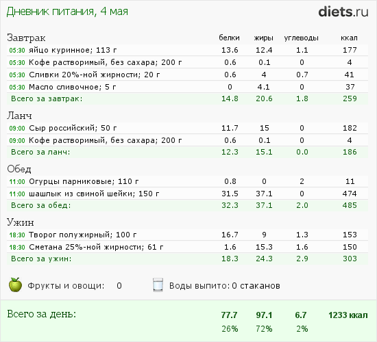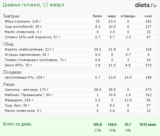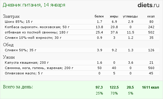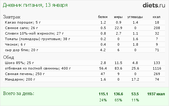 Брала % соотношение БЖУ отсюда, но что-то сегодня недобрала