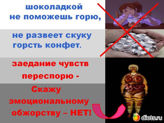 - При отрицательных эмоциях не обращаться к еде за утешением