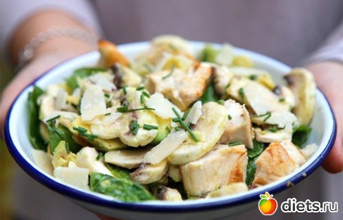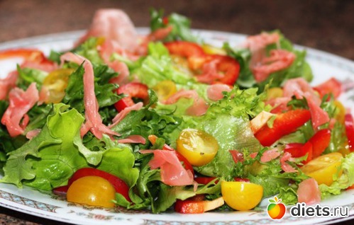 В данном рецепте используются не совсем типичные сочетания продуктов, но не стоит этого опасаться. Такой салат получается очень сытным и вкусным, так что смело пробуйте этот вариант.