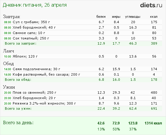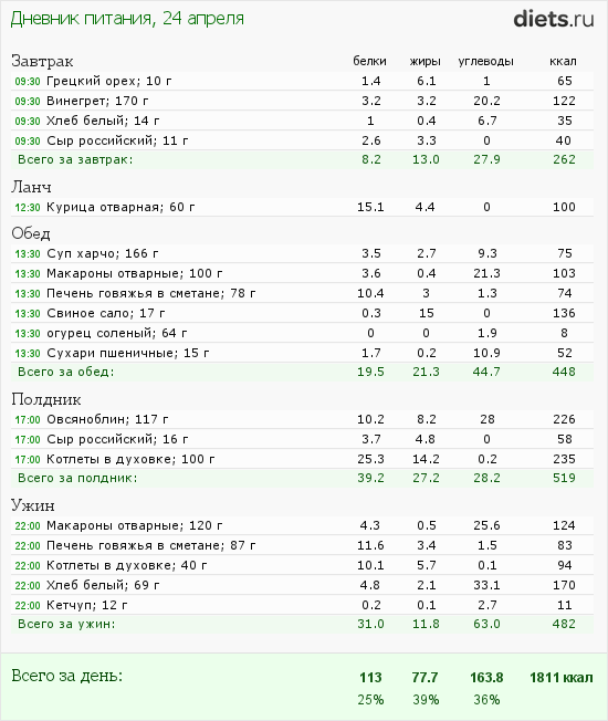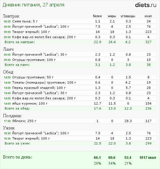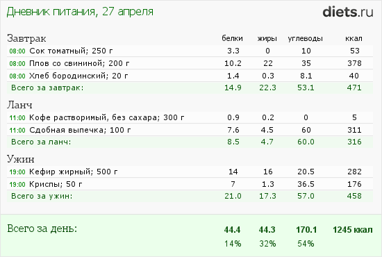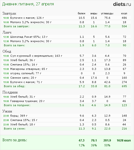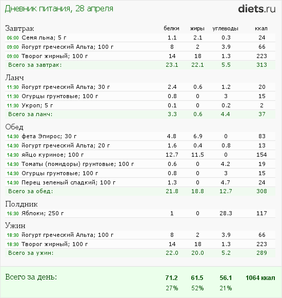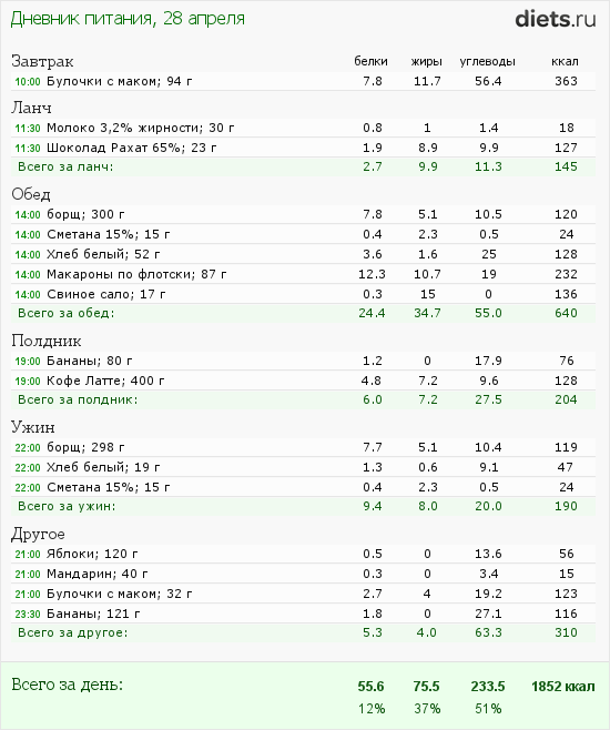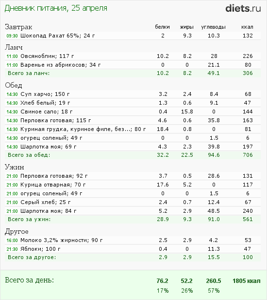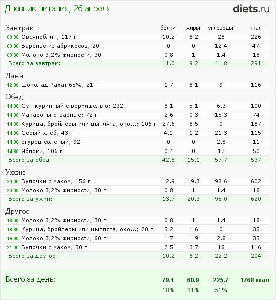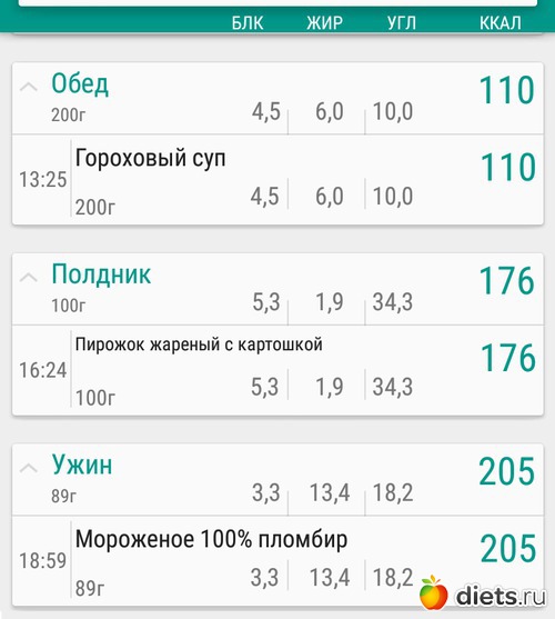 я калории в приложении считаю в телефоне, еще и сюда писать неохота. и не всегда получается до компа добраться, а в телефоне я могу и в электричке по дороге на работу или домой посчитать..