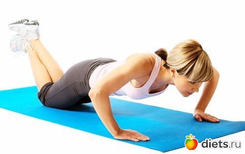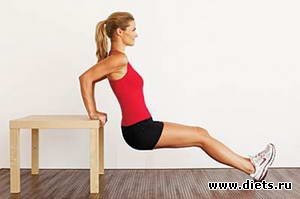 Самые эффективные упражнения для рук без гантелей – это отжимания. Для тех, кто давно не занимался, лучше начинать отжиматься не от пола, а от дивана или даже подоконника. Единственным безоговорочным условием такого упражнения должно стать одновременное опускание и поднимание всего туловища, а не его отдельных частей. Для четкости выполнения озвучивайте счет: на раз – опустились, на два – поднялись. Повторить 5-6 раз, со временем довести количество повторов до 10. Нагрузку увеличивайте на ваше усмотрение.