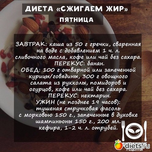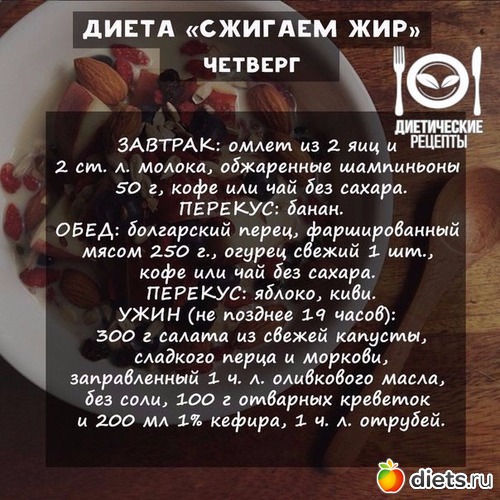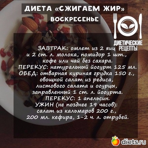 Важно: последний прием пищи за три часа до сна. Исключите во второй половине дня слишком сладкие и пряные блюда. И не забывайте про питьевой режим — не менее 1,5 литра жидкости в течении дня. Если вы будете есть после шести, вышеперечисленные продукты, то непременно быстрее похудеете.