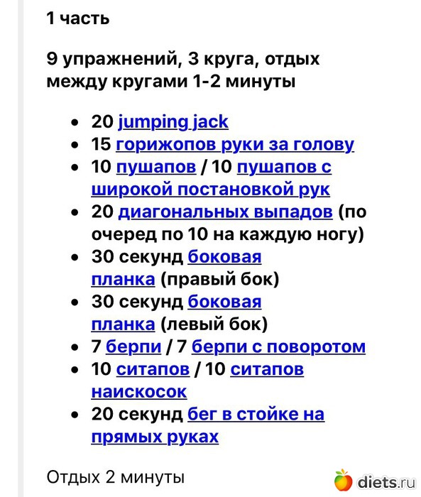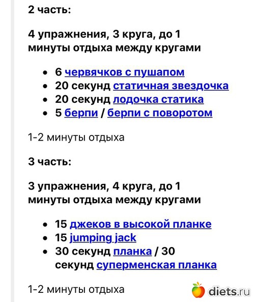 Мне еще с той недели остались, берпи, скалолазы и отчетные берпи, и целая круговая. Раскидаю на эту неделю.