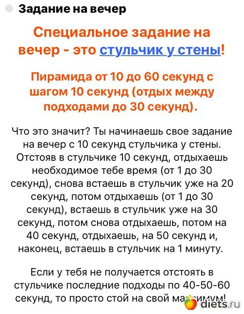 Стулку делать буду, планкочеллендж - буду. Вчерашнюю планку откладываю на неопределенный срок -субботу или воскресенье.