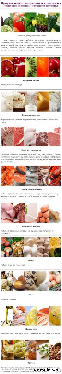"1. Продукты питания, которые можно кушать всем людям с диабетом независимо от тяжести состояния.