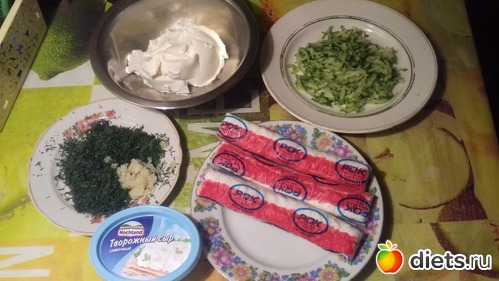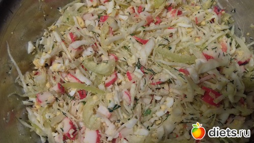 Палочки, мелко нашинкованная капустка и перец, яйца укропчик и усё. Очень так легенько получается