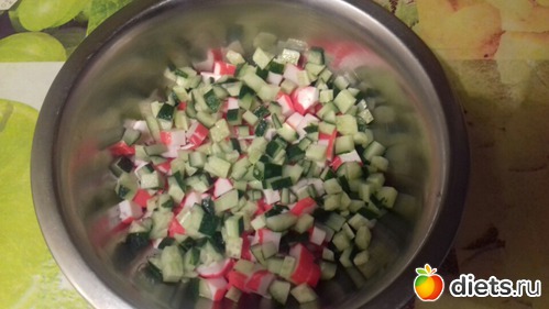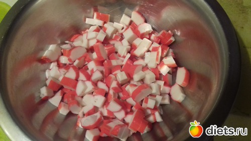 1. Крабовые палочки 200гр. нарезала кубиками
