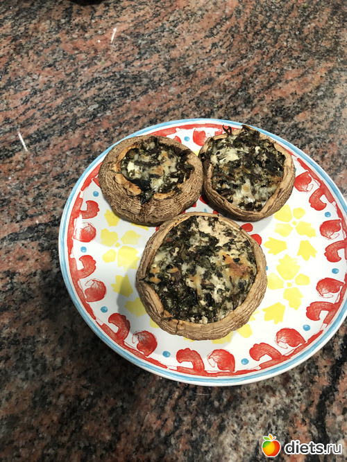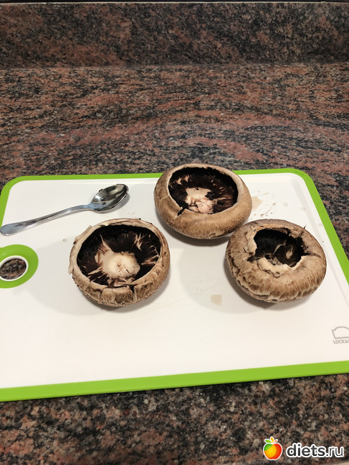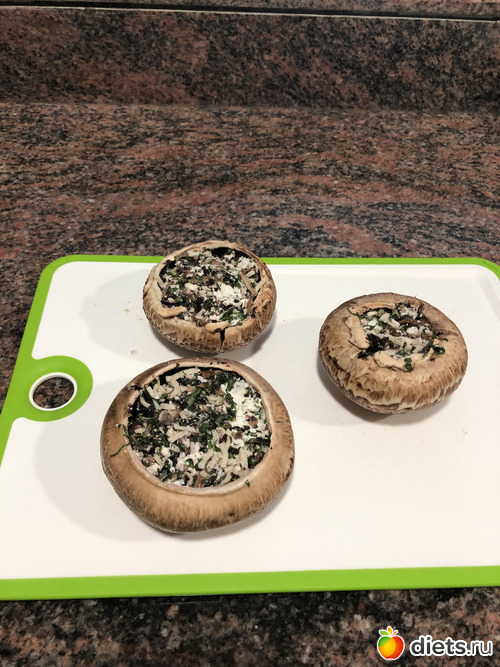- [ ] Полученной массой нафаршировать шляпки грибов