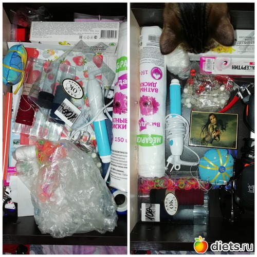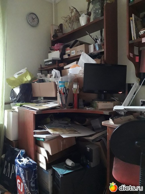 Всё это завалено коробочками для будущей сортировки и удобного хранения, ненужными бумажками, книжками и рисунками.