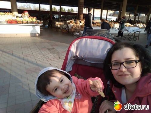 Я вчера с мандаринкой погуляла, а сегодня - с яблочком)))