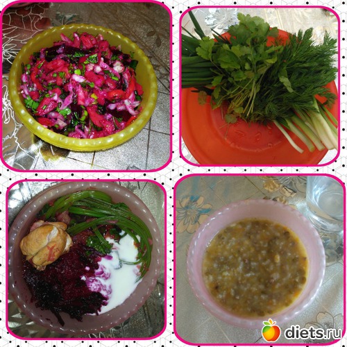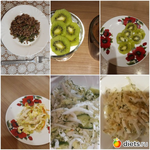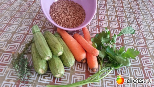 Гречка с цукини, зелень ( это на 2 дня готовила себе). И еще готовила шпинат с рисом ( фото нет).