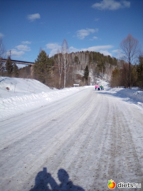 Традиционно мы гуляем до достопримечательности – как можно дальше)). В руках – мандаринка для участников Зимнего марафона, на плечах – груз, равный сброшенному за зиму весу))) Чего у нас только не было – рюкзаки, сумки, утюги!!! Всем это тоже предстоит в конце Весеннего марафона, так что - готовьтесь)))