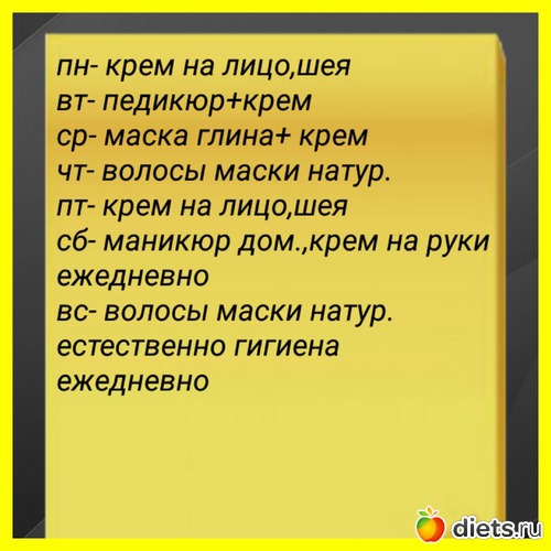Тут всё сложно ,так как мало пользуюсь кремами и масками вообще,ну не люблю я,хочу ввести кофейный скраб 1 раз в неделю,2 раза в неделю умывания овсянкой.Очень бы хотела делать регулярно эти процедуры,а там может ещё что то подберу. По уходу ежедневному всё стандартно разработано годами,там порядок.