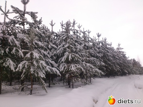 Лес, напомнил школьные лыжи) там такие же , пушистые ёлочки были)