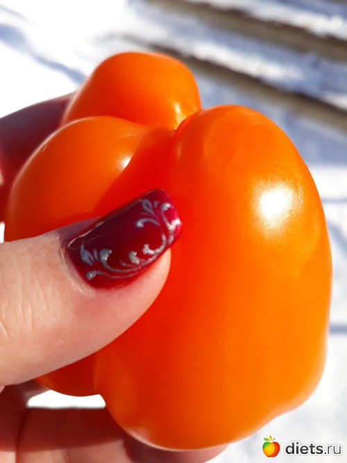 Для выгула выбрала перец.... такого красивого оранжевого цвета( долго объясняла ребенку , что это я такое делаю)))) вопросов "зачем?" было мульон