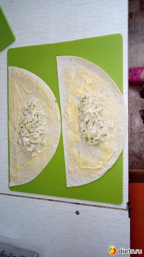 А это мои любимые лаваши с начинкой из салата со свежей капустой, зеленью и варёной куриной грудкой