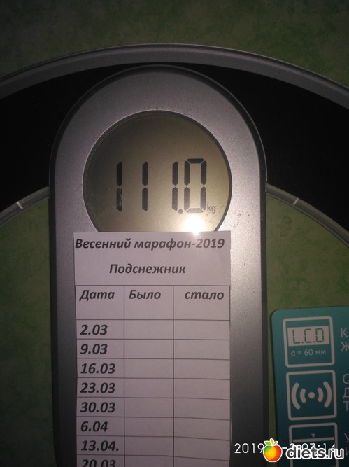 1. Вес. Начинаю марафон на новых весах ( на них вес больше). Старым весам спасибо и