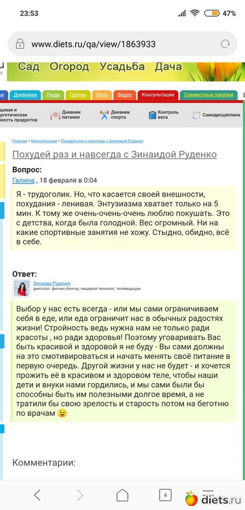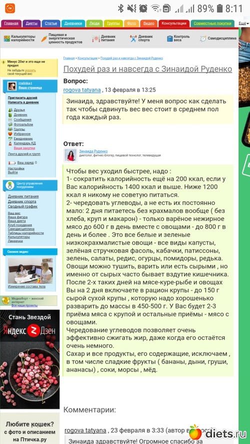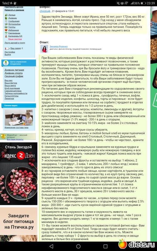 Питание: да простит меня Надежда, но эту часть задания я выполняла в пол силы. Хотела я задать вопрос Зинаиде Руденко, но пролистав ее ответ другим участникам, засомневалась. Вот вопрос, который мне понравился