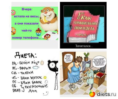 Находим анекдот про похудение, размещаем, подбираем картинку.