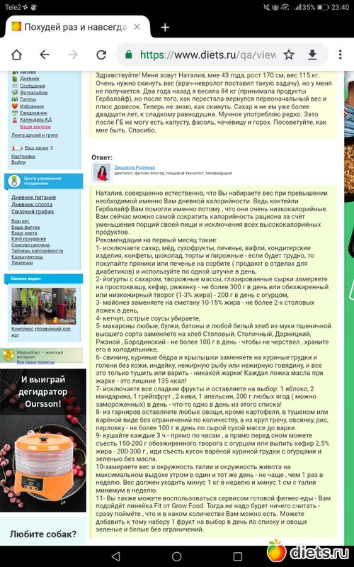 Диетолога прочитала. Много. Впринципе все это уже наизусть знаю, но вот применять трудновато. Теория освоена а вот практика хромает