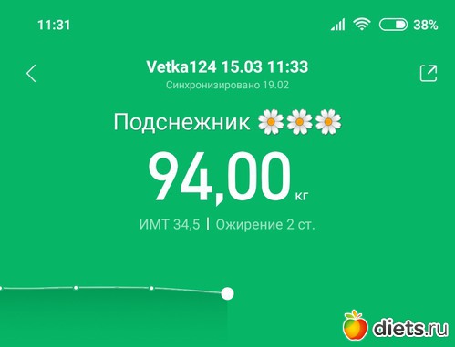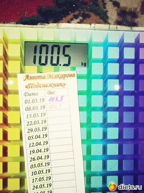 Здесь мы пишем отчёт только по взвешиванию, отчёт по заданиям недели пишем в соседней теме с соответствующим заголовком о заданиях недели!