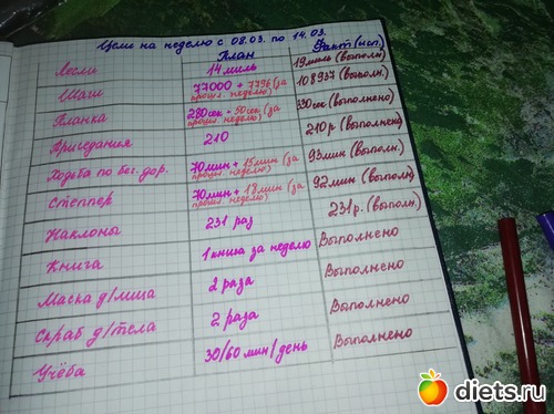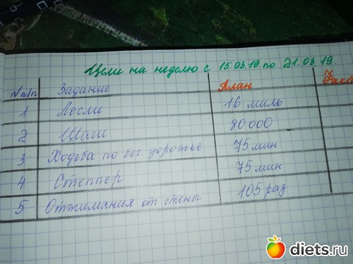 По весу не выполнила. За неделю привес два кг, в сегодняшнему взвешиванию 1 кг ушел, итого в плюсе 1 кг.
