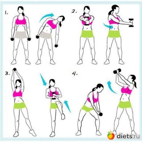 1. Комплекс упражнений 3 раза, с заменой где можно гантелей на эспандер);