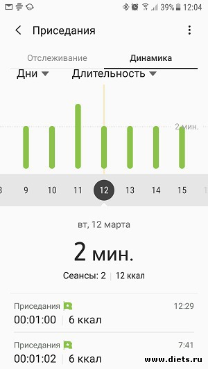 на скриншоте расшифровка одного дня...делала 2 раза в день по 50 приседаний - 1 минута по времени, итого 100 приседаний в день - 2 минуты по времени