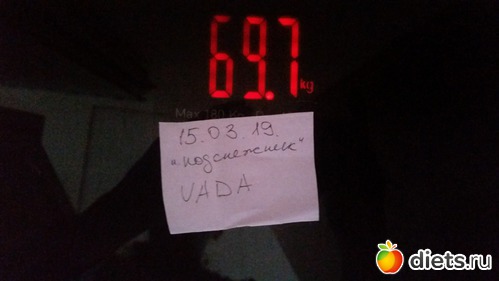 НО! Сегодня пришлось срочно бежать к гинекологу по поводу гормонального сбоя и кровотечения. Назначены таблетки, анализы и месяц без скачков веса чтоб. Поэтому до мая буду держать вес на месте, спорт пока нельзя, буду за кожей просто ухаживать и плавать потихоньку, когда можно будет.
