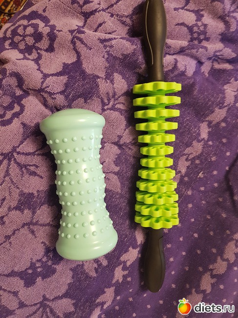 Большой, страшный на вид, но очень удобный. Я до этого пользовалась скалкой для теста ( купила специально для массажа, тесто не раскатывала), тоже работает, но массажером лучше.