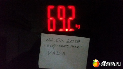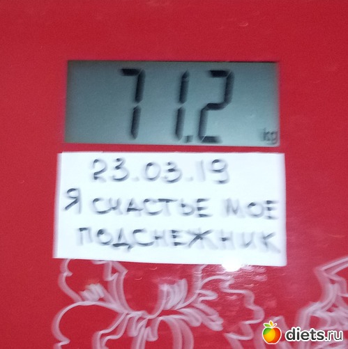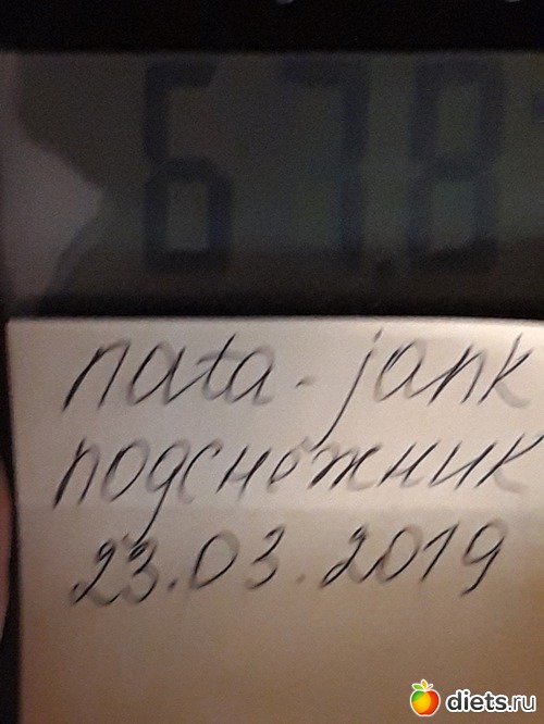 Задание - вес 69.0 не выполнила. В наказание возьму участника отчитавшегося выше меня.