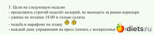 - считать калории (кроме субботы, т.к. иду на ДР)