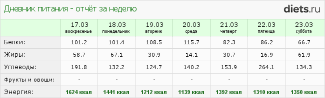 1.Калории до 1500 - все выполнила, кроме воскресенья, но уменьшила калории в следующие дни