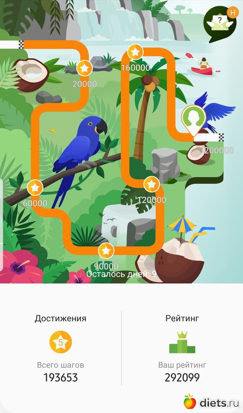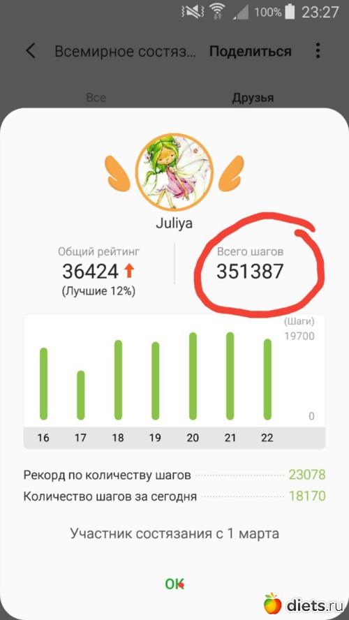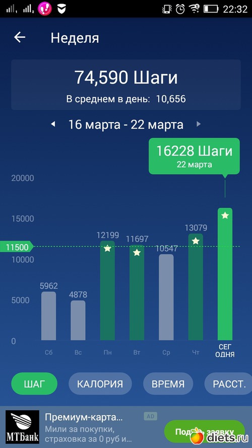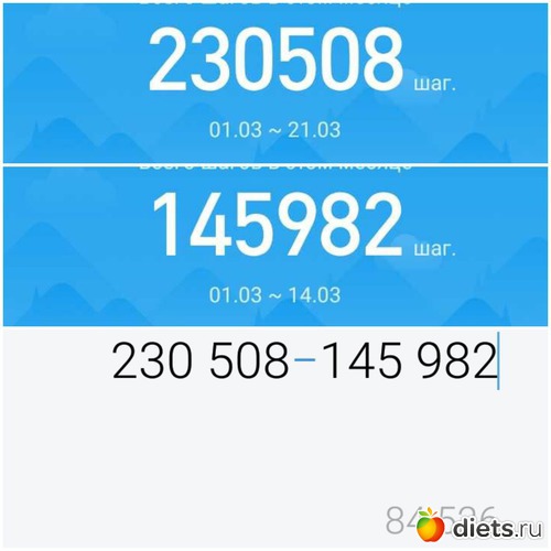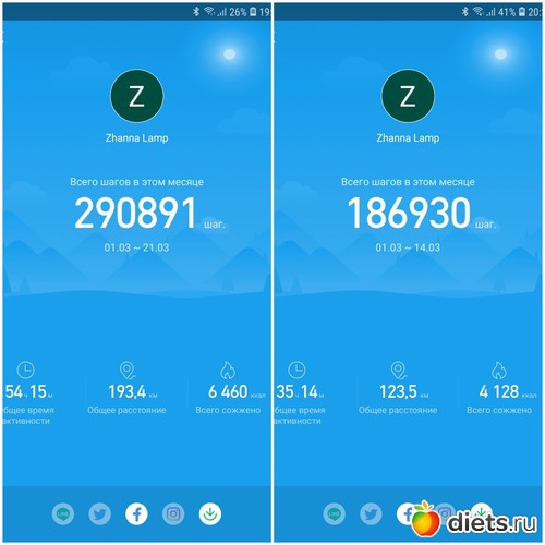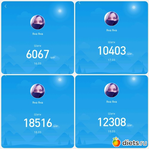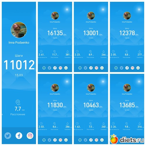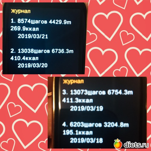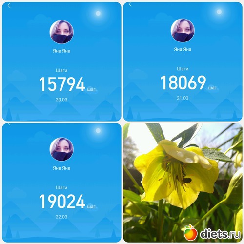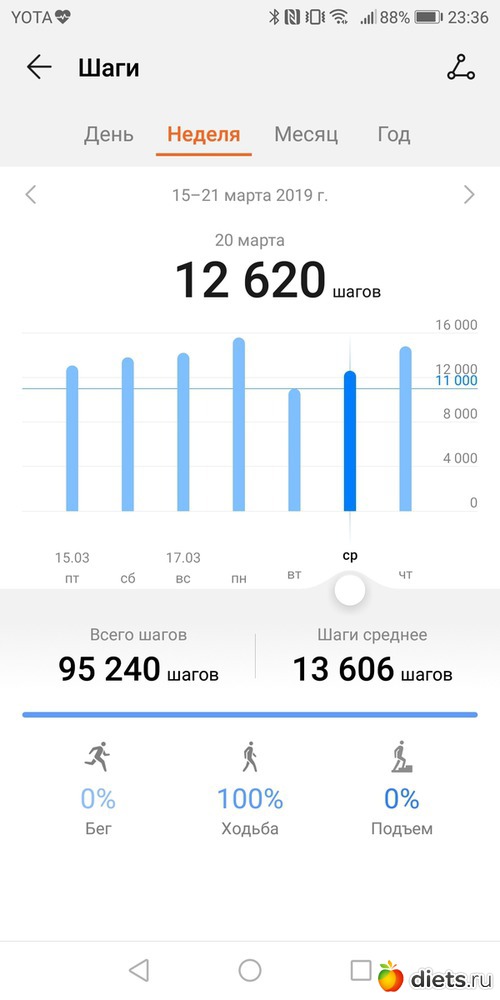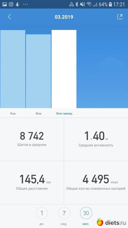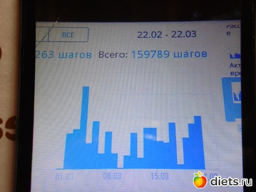 За неделю с 15.03.2019 по 21.03.2019 пройдено 105278 шагов. Всего с 01.03.2019 пройдено 268305 шагов