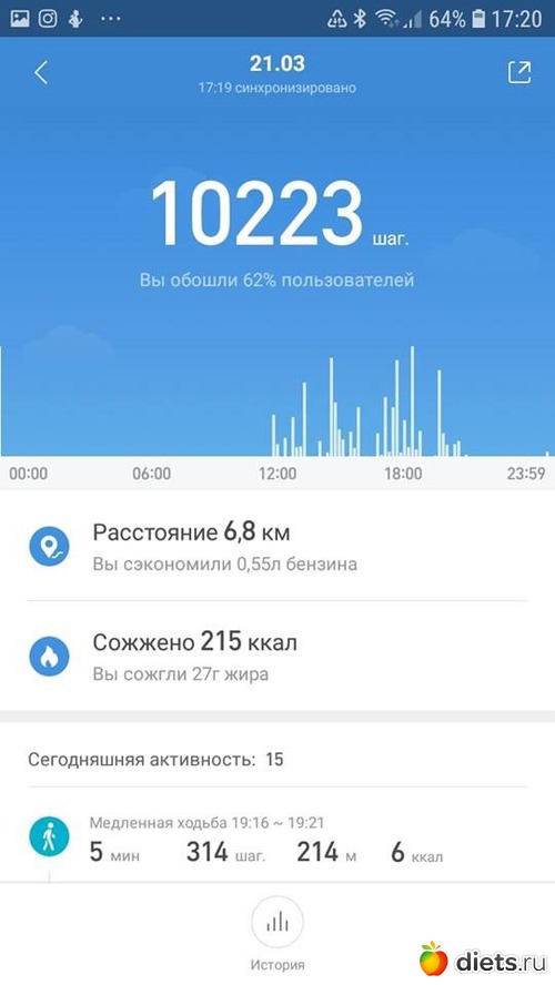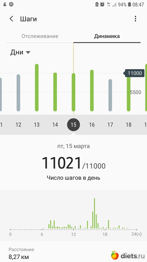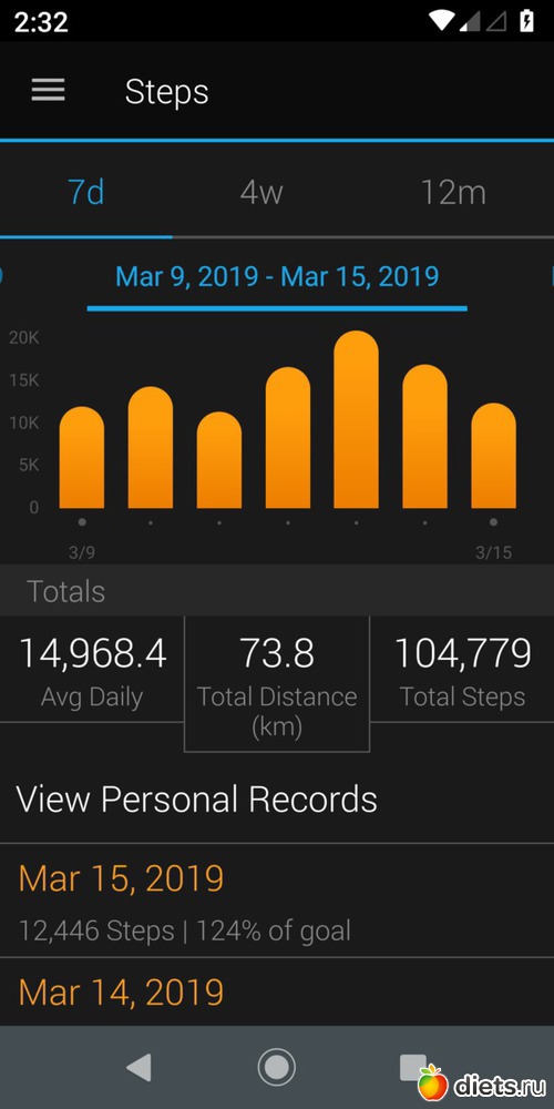 Из этой картинки берем шаги за пятницу 15 марта 12,446