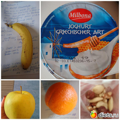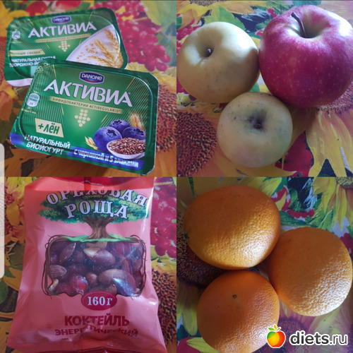 2. Питание. Мои перекусы, если они есть - орехи, фрукты, творожки, йогурты, слайсы с творожным сыром, чай.
