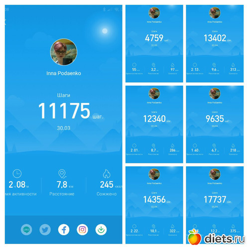 1. Т.к. шаги уже превышены выставляю коллаж по этому пункту ( фактически без сегодня, там в коллаже 50 шагов за 5.04)