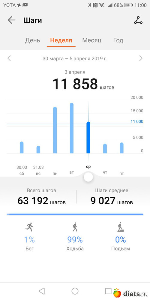 Спорт. Хожу,я на самом деле не много,ритм жизни такой,что всегда на машине,иначе не успею..Плюс забываю одеть браслет после душа)) Но как минимум 4 раща за день я поднимаюсь на 5 этаж)) По шагам вышло так