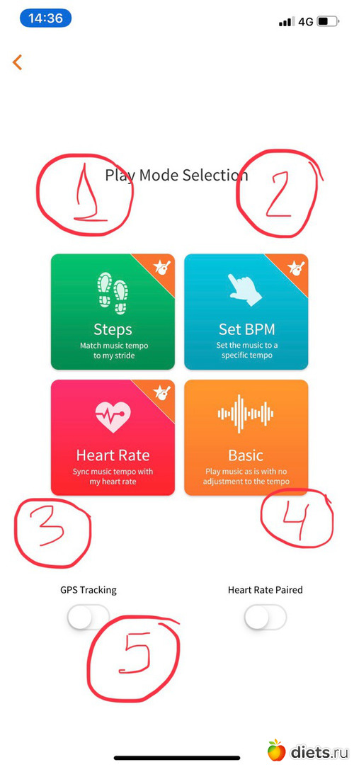 4 - выюрав оранжевое - оставить оригинал песни, т.е. выш темп будет варьироваться от песни к песни