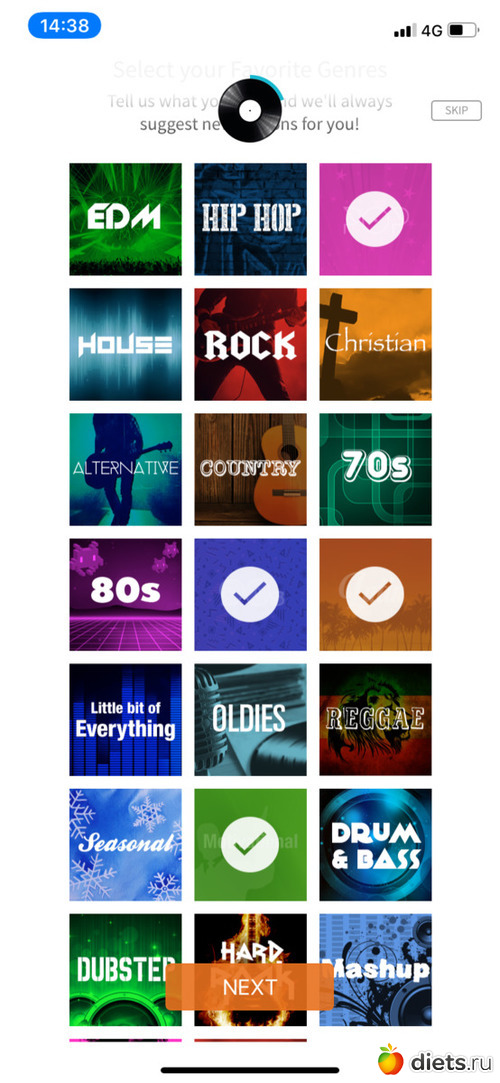 Сорри, там есть галочки - это то, что я отметила для себя: поп, латину, мотивационное и 90-е