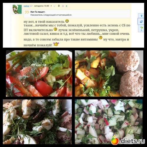 Я поглядела твои последние отчеты, правда без цифр не очень понятно, но мне показалось маловато кушаешь. И я что-то стала недоедать.
