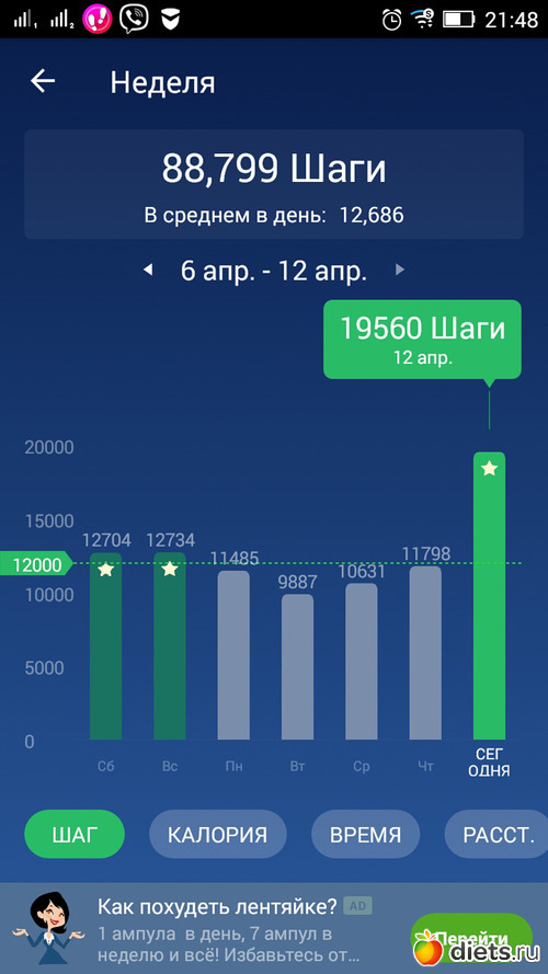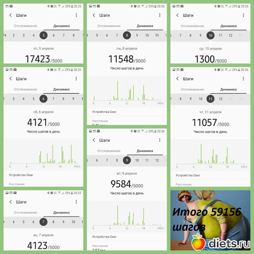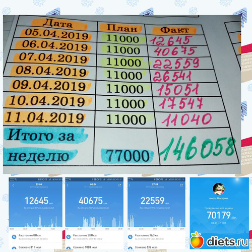 В субботу телефон (шагомер) не брала в руки, всю неделю пыталась нагнать упущенное. После 12тысяч ноги просто отстёгиваются. Всю неделю на таблетках и мазях.