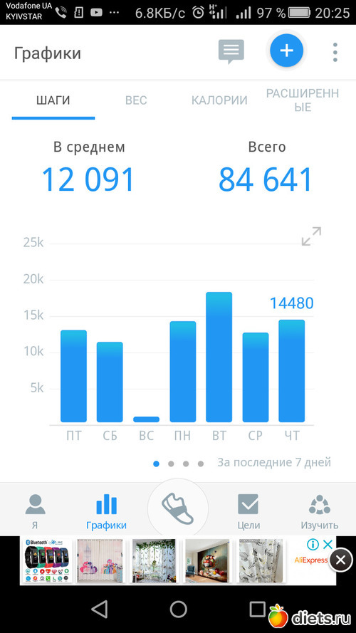Итого за неделю 161 086 шагов. Пока это мой рекорд.