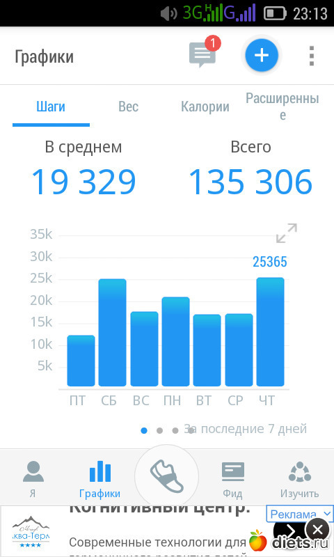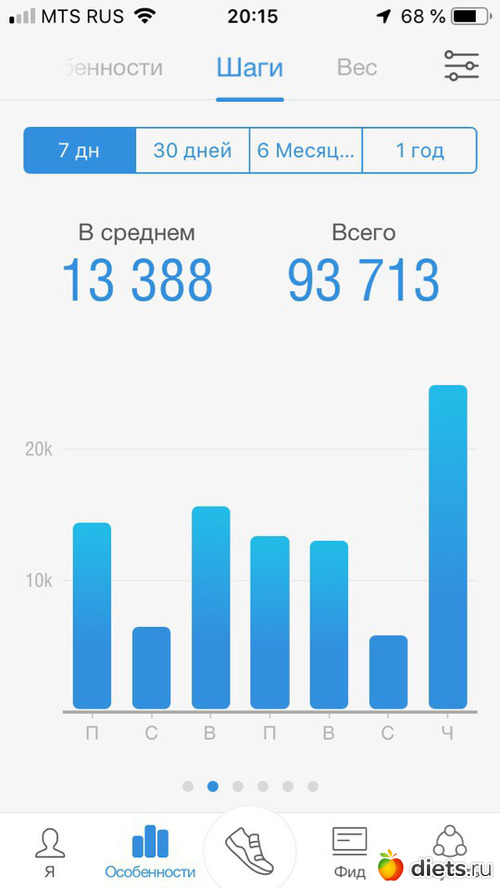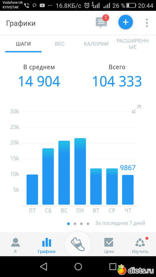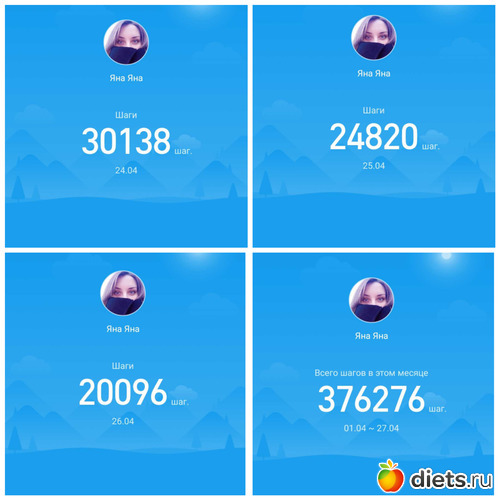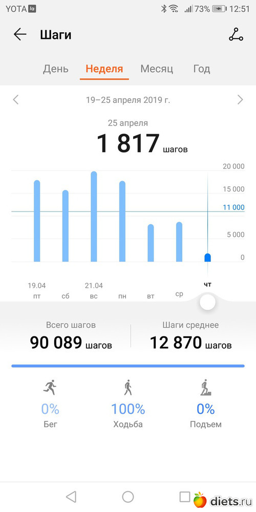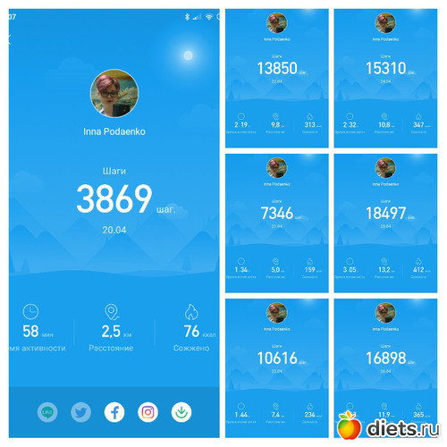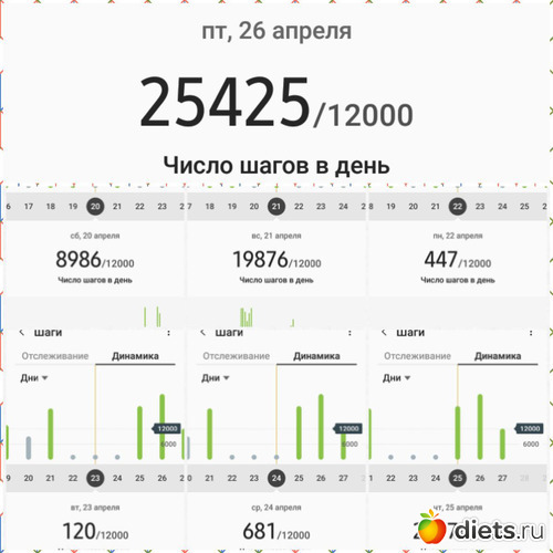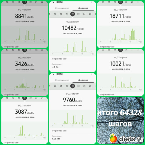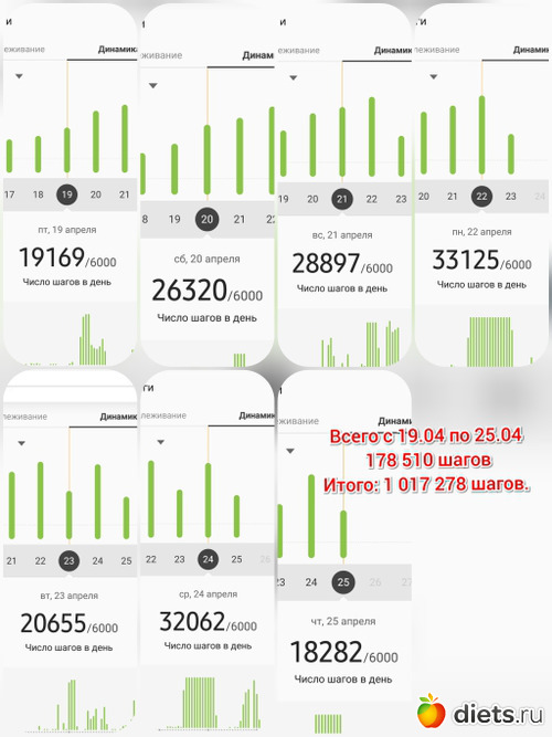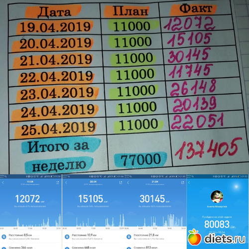 Всем здравствуйте!!! Итого пройдено за неделю 76309 шагов.